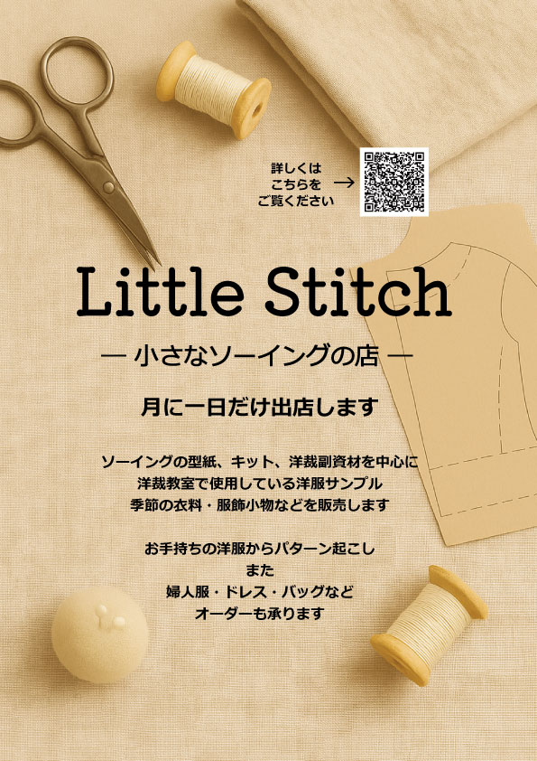 ひと月に一日だけ、洋裁関係のグッズを販売するお店を出店致します。